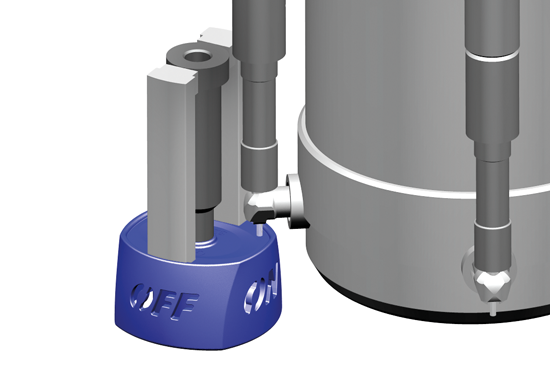 | Heißkanalsystem: | Nadelverschlussanspritzung. Spezialsystem mit seitlicher Schmelzezuführung für Anbindung unter engsten Platzverhältnissen |